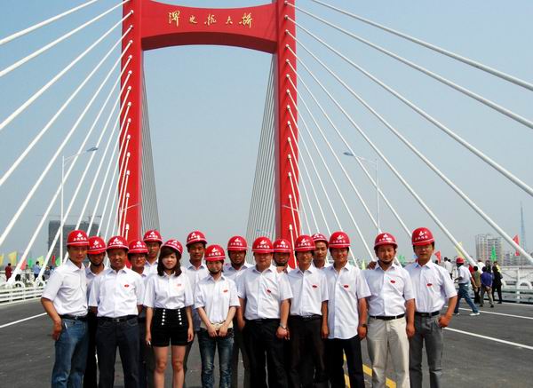 公司自承建該橋以來,攜手省交通規(guī)劃設(shè)計(jì)院、省高等級(jí)公路工程監(jiān)理公司、合肥工業(yè)大學(xué)(監(jiān)控方)傾心傾力地投入到大橋的建設(shè)中,克服結(jié)構(gòu)新穎復(fù)雜,建設(shè)時(shí)間緊,施工難度大等困難,充分運(yùn)用新技術(shù)、新工藝、新材料,首次采用斜拉橋主橋塔梁同步的施工工藝,極大的縮短了施工工期;同時(shí)在施工中保質(zhì)量、搶進(jìn)度、重安全,實(shí)現(xiàn)了安全生產(chǎn)零事故的目標(biāo),圓滿地完成大橋建設(shè)任務(wù)。整個(gè)建設(shè)周期16個(gè)月,比常規(guī)工期提前半年通車。