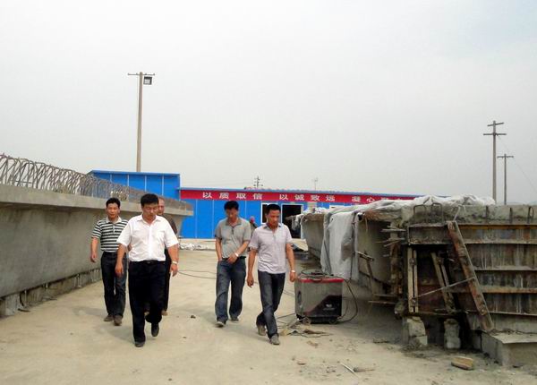 7月2日下午2點(diǎn)30分,汪總一行先來到馬鞍山東環(huán)改造項(xiàng)目指導(dǎo)工作,該項(xiàng)目經(jīng)理冷峰全程陪同。汪總一行首先頂著酷暑、披著煙塵,來到了該項(xiàng)目部的清淤現(xiàn)場、預(yù)制場和樁基現(xiàn)場,仔細(xì)耐心的查看了各項(xiàng)施工任務(wù)的進(jìn)展情況以及質(zhì)量情況。隨后,在項(xiàng)目部會(huì)議室,汪總一行又聽取了項(xiàng)目經(jīng)理冷峰關(guān)于近期該項(xiàng)目工程、試驗(yàn)、安全、財(cái)務(wù)等工作開展情況的匯報(bào)后,在肯定了該項(xiàng)目前期工作的同時(shí),也針對其中的工程質(zhì)量、安全文明等存在的問題,提出了寶貴意見。希望該項(xiàng)目能抓緊落實(shí),及時(shí)把問題解決。該項(xiàng)目經(jīng)理冷峰表示一定會(huì)按照公司的意見與要求,解決問題,提高工作水平。