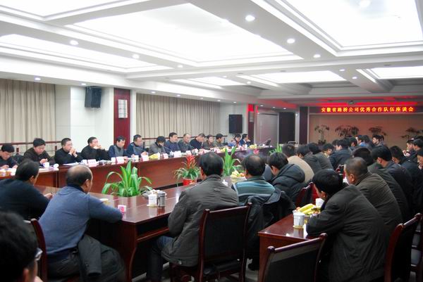 座談會開始前,會場播放了公司宣傳片,展示公司二十五年來的發(fā)展歷程。座談會由副總經理盛明宏主持。總經理助理傅月斌通報了公司2010年施工總體情況。公司分管領導、各部門負責人、項目經理分別作了發(fā)言。黨委書記陳光磊指出合作共贏、共同發(fā)展是公司永久追求的目標,安徽路橋的業(yè)績也凝聚著合作隊伍的努力;合作共贏不僅是要經濟利益,更要追求社會效益;公司各級對合作隊伍的真誠服務是職責所在,合作隊伍認真履約、堅強給力,就是對公司工作的最大支持。陳書記還表示目前項目已建立了支部、職工小家、職工書屋等,歡迎合作隊伍積極參加,享受權利。
