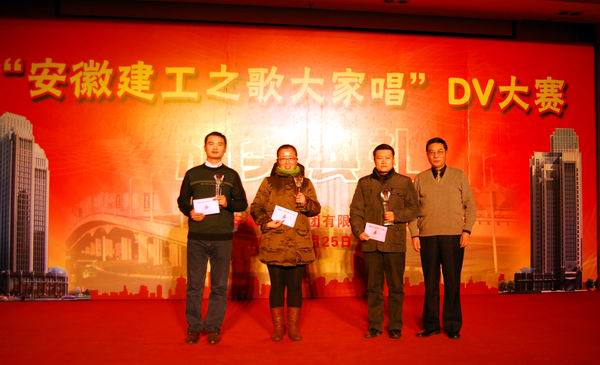 公司送審的DV以?xún)?nèi)容豐富、重點(diǎn)突出、畫(huà)面精美,受到了集團(tuán)領(lǐng)導(dǎo)和專(zhuān)家的一致好評(píng),并評(píng)為此次大賽的二等獎(jiǎng),同時(shí)由于組織得力榮獲安徽建工之歌大家唱優(yōu)秀組織獎(jiǎng)。