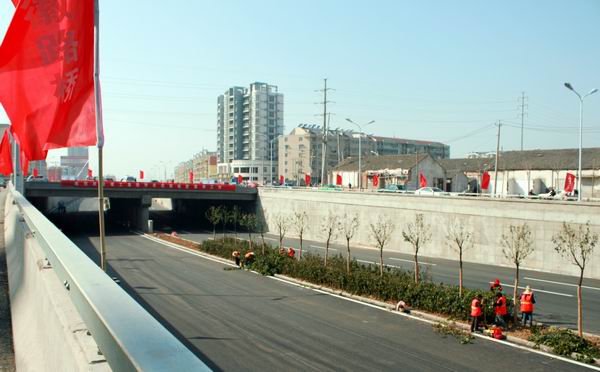 新蚌埠路與北二環(huán)路立交橋采取北二環(huán)路下穿新蚌埠路的路塹式結(jié)構(gòu),通過立交銜接,兩條路實(shí)現(xiàn)交通分流,成為北部城區(qū)的兩條快速通道。該項(xiàng)目自2008年9月開工以來(lái),積極響應(yīng)公司號(hào)召,發(fā)揚(yáng)“團(tuán)結(jié)拼搏、優(yōu)質(zhì)高效”的精神,趕進(jìn)度、保質(zhì)量、重安全,全體員工們團(tuán)結(jié)一致,艱苦奮斗,于2009年3月順利完成施工任務(wù),比原計(jì)劃工期提前了兩個(gè)多月,深受業(yè)主和社會(huì)各界的好評(píng)。該項(xiàng)目在施工過程中獲市重點(diǎn)局通報(bào)嘉獎(jiǎng),榮獲了建工集團(tuán)優(yōu)秀項(xiàng)目部、安全文明示范工地等稱號(hào),項(xiàng)目經(jīng)理李建成被評(píng)為建工集團(tuán)優(yōu)秀項(xiàng)目經(jīng)理,工程組被評(píng)為建工集團(tuán)先進(jìn)班組。