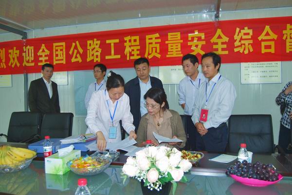 1011,交通運(yùn)輸部公路工程質(zhì)量安全綜合督導(dǎo)組到公司承建的宣寧高速02標(biāo)進(jìn)行督查。交通運(yùn)輸部工程質(zhì)量監(jiān)督局副局長(zhǎng)張曉冰、江蘇省交通運(yùn)輸廳副廳長(zhǎng)丁峰,以及江西省、重慶市、北京市等質(zhì)監(jiān)站領(lǐng)導(dǎo)分別對(duì)宣寧高速02標(biāo)綜合、橋隧、內(nèi)業(yè)三方面進(jìn)行了全面細(xì)致地檢查。安徽省交通運(yùn)輸廳副廳長(zhǎng)羅寧、省交通質(zhì)監(jiān)站站長(zhǎng)何光、書(shū)記殷治寧、省高速控股集團(tuán)副總經(jīng)理錢(qián)東升等陪同檢查。