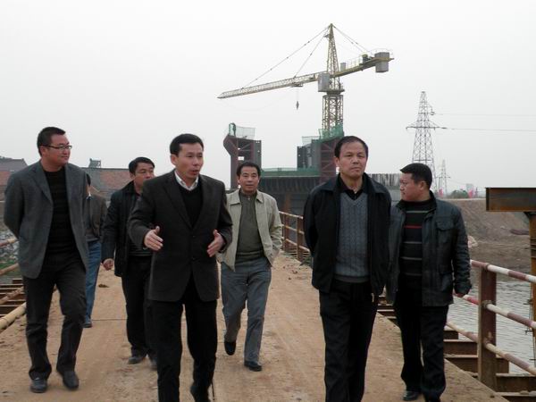 下午5點,潘主席一行經(jīng)過3個多小時的車程后來到項目施工現(xiàn)場,先后視察了兩個標段的建設工地和預制梁場。視察過程中,潘主席不時的對施工進展情況和技術要點進行詳細的詢問,對公司精湛的施工技術和良好的管理表示敬佩。