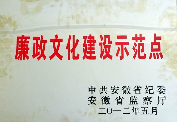近日,公司被中共安徽省紀(jì)委、安徽省監(jiān)察廳命名為全省第三批廉政文化建設(shè)示范點(diǎn),成為全省獲此榮譽(yù)的17家省屬企業(yè)之一。