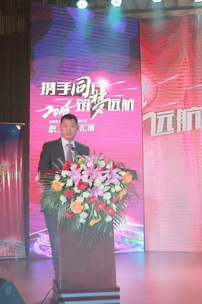 演出現(xiàn)場(chǎng)華燈璀璨,座無(wú)虛席,氣氛喜慶熱烈。匯演正式開(kāi)始前,公司董事長(zhǎng)、總經(jīng)理孫學(xué)軍發(fā)表了熱情洋溢的致辭。他首先代表公司向蒞臨現(xiàn)場(chǎng)的嘉賓及長(zhǎng)期以來(lái)堅(jiān)持在公司各個(gè)崗位的員工及家屬,致以誠(chéng)摯的問(wèn)候和新春的美好祝愿,向默默奉獻(xiàn),為路橋事業(yè)奠基的前輩們致以崇高的敬意。指出,2015年,是宏觀形勢(shì)錯(cuò)綜復(fù)雜的一年,也是公司成績(jī)斐然的一年,在建工集團(tuán)的正確領(lǐng)導(dǎo)下,全體員工凝心聚力,開(kāi)拓奮進(jìn),取得了驕人的業(yè)績(jī)。充滿機(jī)遇和挑戰(zhàn)的“十三五”已經(jīng)開(kāi)局,全體路橋人要秉承優(yōu)良傳統(tǒng),凝心聚力,同舟共濟(jì),譜寫(xiě)安徽路橋新的輝煌。
