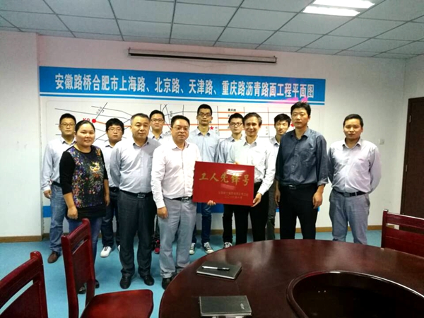10月18日、20日, 集團公司工會副主席吳曉伍一行來到公司承建的上海路路面項目、池州S321路面項目,分別對 “工人先鋒號”和“職工書屋”創(chuàng)建工作進行考核驗收。公司工會主席楊建強,總經(jīng)理助理、路面公司總經(jīng)理江仲明陪同。