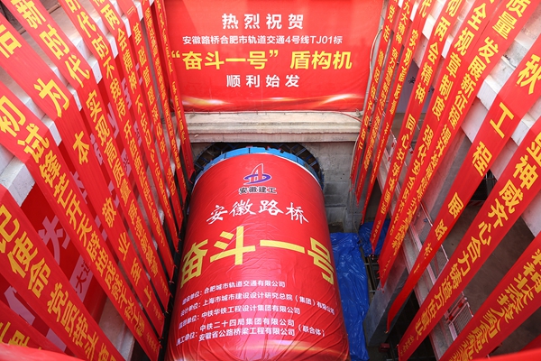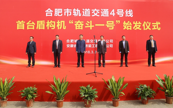 陽春三月生機勃發,奮斗一號掘進始發。3月31日上午,公司首臺盾構機“奮斗一號”在軌道交通4號線1標長寧大道站順利始發,標志著合肥軌道交通4號線正式進入盾構施工階段。合肥市軌道公司總經理羅斌,安徽建工集團副總經理王厚良,公司董事長、黨委書記、總經理孫學軍等領導和參建單位代表出席始發儀式。10時16分,羅斌宣布“奮斗一號”正式始發。儀式結束后,與會領導與專家深入始發現場、管片存放區檢查指導。