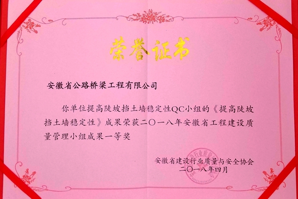 近期,由安徽省建設(shè)行業(yè)質(zhì)量與安全協(xié)會主辦的安徽省建筑業(yè)企業(yè)2018年QC小組活動成果交流會在合肥順利召開,358項(xiàng)成果參加了發(fā)布和交流。道路分公司展示的3項(xiàng)QC成果榮獲兩項(xiàng)一等獎和一項(xiàng)二等獎。