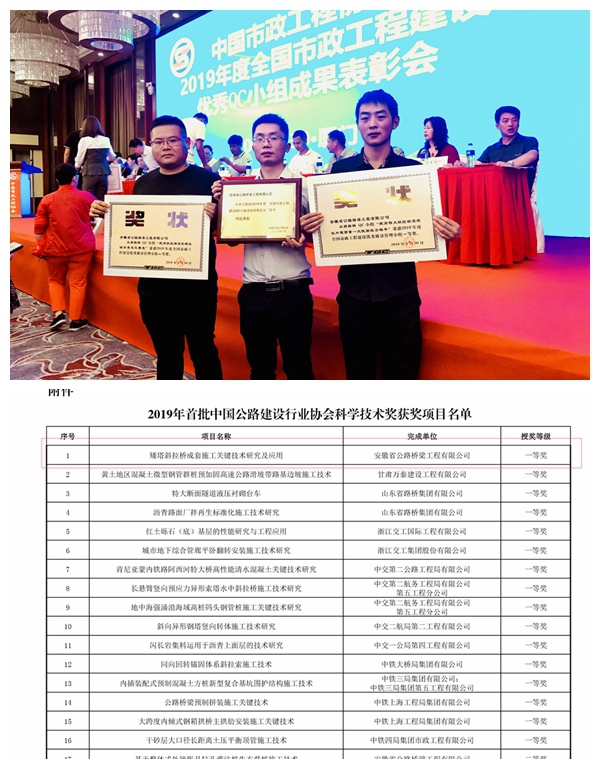 中國公路建設行業(yè)協(xié)會科學技術獎是為貫徹國家深入實施創(chuàng)新驅動發(fā)展戰(zhàn)略方針,促進公路交通創(chuàng)新發(fā)展,進一步推動成果轉化和行業(yè)產學研用深度融合設立的國家級行業(yè)協(xié)會獎,公司也是省內唯一一家榮獲一等獎的省屬企業(yè)。中國市政協(xié)會本次共發(fā)布QC成果800余項,公司有8項成果參加發(fā)布。近4年來,公司已累計榮獲一等獎3項、二等獎5項、三等獎6項,在省內行業(yè)處于領先水平。