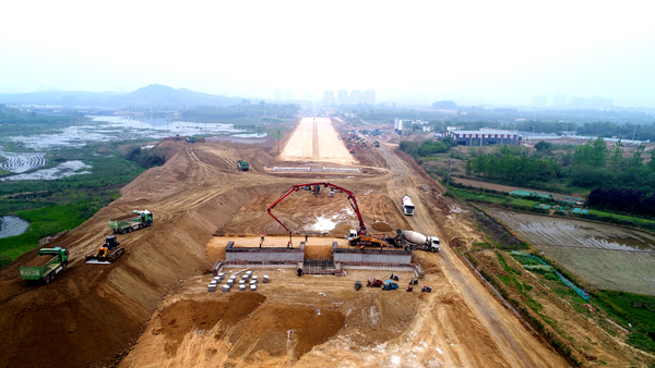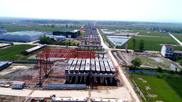 3月25日,羅埠河特大橋主橋最后一個承臺歷時11個小時的澆筑,順利完成,自此進入地面以上施工。4月11日,徽州大道(廬江段)項目全線首片箱梁順利架設,較業主下達的架梁工期提前了半個多月,施工進展再次取得突破,標志著項目全面進入上部結構施工階段。