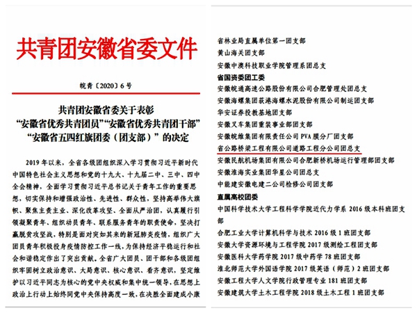 道路分公司團總支榮獲“安徽省五四紅旗團總支”稱號