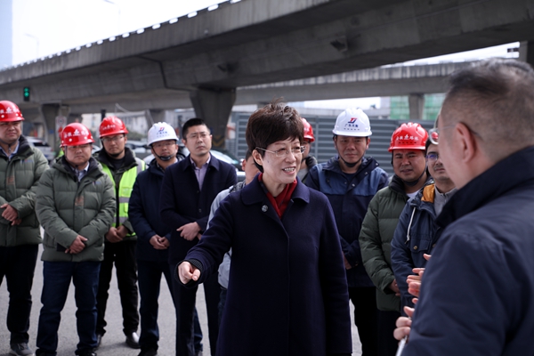 凌云來(lái)到施工現(xiàn)場(chǎng),與參建人員一一握手寒暄并送上節(jié)日祝福。在聽(tīng)取了項(xiàng)目概況、施工進(jìn)展、施工亮點(diǎn)和春節(jié)期間施工目標(biāo)及各項(xiàng)保障工作后,凌云對(duì)春節(jié)期間項(xiàng)目全體施工人員放棄與家人團(tuán)聚,依舊堅(jiān)守崗位致以崇高敬意,并對(duì)項(xiàng)目取得的各項(xiàng)成績(jī)給予充分肯定。她強(qiáng)調(diào),要搶抓春節(jié)期間施工優(yōu)勢(shì),保持大干勢(shì)頭,加快施工進(jìn)度,保障施工安全,盡早還路與民。