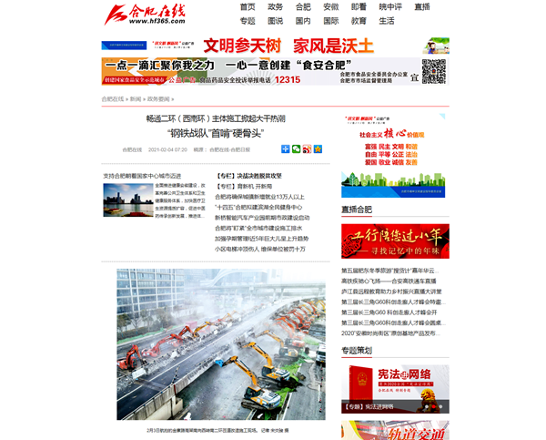 安徽路橋公司承建的暢通二環(huán)(西南環(huán))工程是目前合肥市最重要的市政工程之一。自項(xiàng)目建設(shè)以來,備受社會(huì)各界的高度關(guān)注。特別是在春節(jié)期間,項(xiàng)目鉚足干勁、大干正酣的諸多場景,得到人民網(wǎng)、中國日報(bào)、學(xué)習(xí)強(qiáng)國、安徽衛(wèi)視、中安在線、安徽網(wǎng)、新安晚報(bào)、澎湃新聞、合肥日報(bào)等眾多媒體的全方位、多角度報(bào)道。