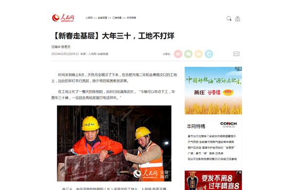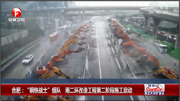 人民網(wǎng)【新春走基層】專欄報(bào)道了該項(xiàng)目大年三十工地不打烊,參建人員持續(xù)奮戰(zhàn)在施工一線。中國日報(bào)海外版《End of the road》、合肥日報(bào)《“鋼鐵戰(zhàn)隊(duì)”首啃“硬骨頭”》報(bào)道了公司第二次對老舊匝道橋拆除工作的場景。安徽衛(wèi)視超級新聞場等媒體以《“鋼鐵戰(zhàn)士”組隊(duì) 南二環(huán)改造工程第二階段施工啟動(dòng)》報(bào)道了南二環(huán)改造工程順利進(jìn)入第二階段施工節(jié)點(diǎn)的訊息。學(xué)習(xí)強(qiáng)國合肥學(xué)習(xí)平臺(tái)、澎湃新聞以《合肥:暢通南二環(huán) 鉚足干勁 大干正酣》為題,合肥新聞聯(lián)播以《“步履不?!北惩?nbsp;建設(shè)按下“快進(jìn)鍵”》《過年堅(jiān)守南二環(huán) 來年道路早暢通》為題,報(bào)道了春節(jié)期間該項(xiàng)目施工現(xiàn)場干出的“加速度”。抖音等自媒體平臺(tái)以短視頻形式展示了數(shù)十臺(tái)機(jī)械同時(shí)作業(yè)的震撼場面,關(guān)注熱度超過3百萬,安徽路橋速度得到合肥市民的再次點(diǎn)贊。