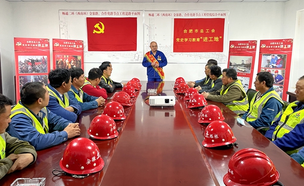 近日,由合肥市總工會組織開展的黨史學(xué)習(xí)教育“進(jìn)工地”宣講活動來到暢通二環(huán)(西南環(huán))項目,全國勞動模范徐輝為一線建設(shè)者作主題宣講報告。