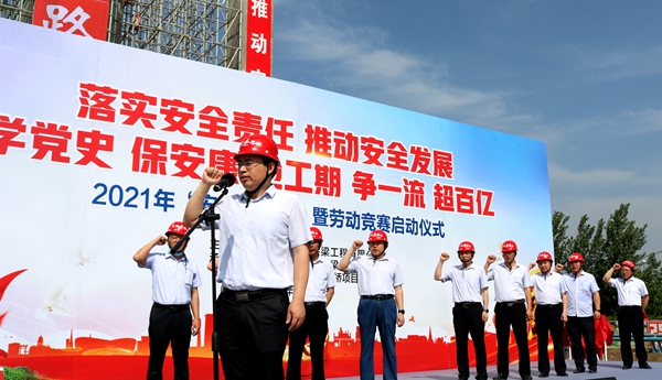 5月29日,公司2021年“安全生產(chǎn)月”暨勞動(dòng)競(jìng)賽活動(dòng)啟動(dòng)儀式在繁華大道橋項(xiàng)目舉行。公司黨委書(shū)記、董事長(zhǎng)、總經(jīng)理錢(qián)申春出席啟動(dòng)儀式并作動(dòng)員講話,公司領(lǐng)導(dǎo)、機(jī)關(guān)各部門(mén)負(fù)責(zé)人、分子公司領(lǐng)導(dǎo)班子成員、各項(xiàng)目經(jīng)理及工友代表共計(jì)150余人參加啟動(dòng)儀式。
