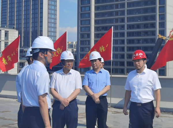 羅云峰一行深入施工現場,實地查看了項目建設推進情況及安全文明施工管理情況,詳細詢問了項目存在的風險隱患、防范舉措及安全施工保障措施,高度肯定了項目黨建引領生產、智慧科技助力、安全管理創(chuàng)新等工作,對堅守崗位、辛勤付出的項目參建人員表示慰問。