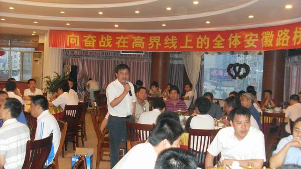 晚上,項目部安排慶功晚宴,公司總經(jīng)理汪衛(wèi)東攜路面公司領(lǐng)導(dǎo)班子成員,特地來到工地與大家歡聚一堂。