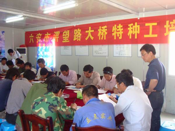 為進(jìn)一步加大項(xiàng)目部安全生產(chǎn)培訓(xùn)教育力度,切實(shí)提高特種作業(yè)人員的安全素質(zhì)和安全操作技能水平,確保在崗特種作業(yè)人員100%持證上崗。淠望路大橋項(xiàng)目部在公司人力資源部的指導(dǎo)和幫助下,以“安全生產(chǎn)月活動”為契機(jī),于6月3日至4日,組織了一期特種作業(yè)人員上崗培訓(xùn)和復(fù)審培訓(xùn)再教育活動。邀請了省安監(jiān)局特種作業(yè)培訓(xùn)中心的老師直接來到一線,對項(xiàng)目部及各下屬作業(yè)隊(duì)的電工、焊工、起重工等特種作業(yè)人員進(jìn)行安全技術(shù)培訓(xùn),培訓(xùn)的主要內(nèi)容有特種作業(yè)人員安全生產(chǎn)法律法規(guī)知識、安全生產(chǎn)管理知識、安全技術(shù)理論知識等。