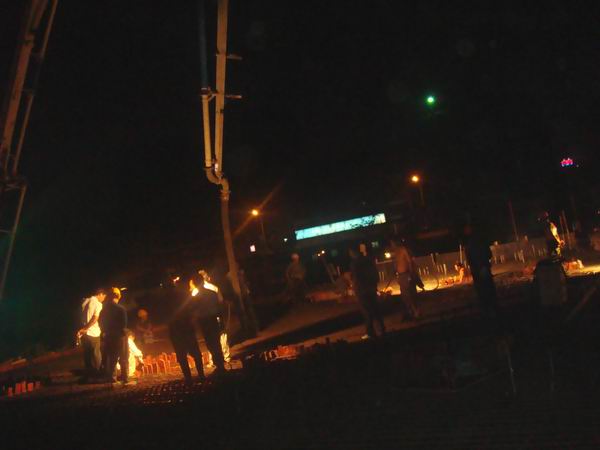 傍晚時分,項目部組織精干力量、調集性能良好的機械設備陸續(xù)進入引橋澆注場地。18:00隨著一陣隆隆的炮竹聲響過,淠望路大橋引橋首跨上部結構的混凝土澆注便正式開始了,此次澆筑的混凝土位于大橋10號墩與11號墩之間,混凝土體積320方?,F場施工人員克服重重困難,把安徽路橋人的特別能吃苦特別能戰(zhàn)斗的精神發(fā)揮得淋漓盡致;經過十多個小時的連續(xù)工作,于2009年6月22日凌晨五點圓滿完成了首跨混凝土的澆筑,受到業(yè)主、監(jiān)理單位的肯定和贊揚,同時也為今后引橋上部結構混凝土的澆筑工作積累了經驗。