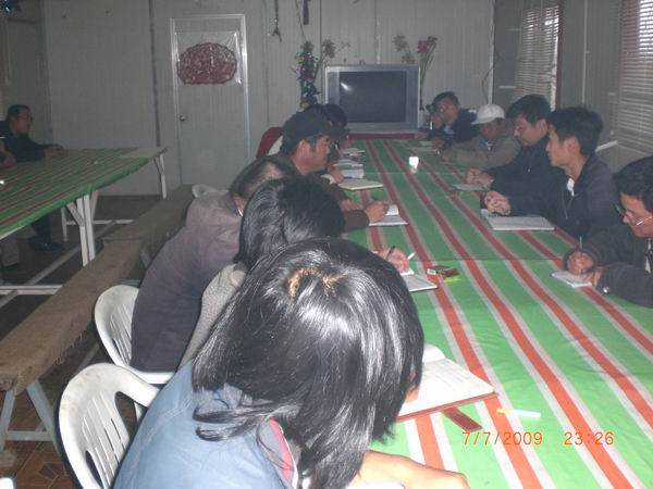 7日晚DODOLA項(xiàng)目召開了全體員工會(huì)議,項(xiàng)目常務(wù)副經(jīng)理汪遵彪?yún)R報(bào)了項(xiàng)目工作開展情況,并對(duì)下一步施工計(jì)劃作了詳細(xì)安排和布置,將每個(gè)階段性工作任務(wù)落實(shí)到人。
