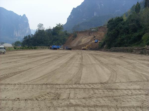 11月5日,位于K57+000的路基試驗(yàn)段正式開始施工;同時,標(biāo)段內(nèi)構(gòu)造物的施工也于5日正式開工。至此,我標(biāo)段內(nèi)橋梁、路基、構(gòu)造物的施工已全面展開。10月下旬我部開始了標(biāo)段紅線內(nèi)的清表工作,經(jīng)過項(xiàng)目上多個部門十余天的努力,最終將一條翻越山嶺、穿越村莊的施工便道通到了路基試驗(yàn)段所在地,機(jī)械設(shè)備及車輛按時進(jìn)入指定地點(diǎn),為試驗(yàn)段的開工做好充分準(zhǔn)備。