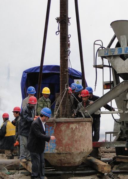 11月10日上午10時(shí),我項(xiàng)目部所屬的皂角樹特大橋(總長(zhǎng)1506.08米)60號(hào)橋墩2號(hào)樁基正式澆注。該樁基樁長(zhǎng)21米,樁徑1.5米,所用混凝土為C30水下混凝土,這是宜巴高速第二高監(jiān)辦所轄5個(gè)標(biāo)段內(nèi)第一根開始澆注的樁基。宜巴高速指揮部、第二代表處及高監(jiān)辦的領(lǐng)導(dǎo)對(duì)此高度關(guān)注,在我標(biāo)段橋梁一工區(qū)見證了樁基澆注全過程。在澆注施工前項(xiàng)目部也做了充分的準(zhǔn)備工作,所有工序均是高標(biāo)準(zhǔn),嚴(yán)要求,嚴(yán)格按照規(guī)范施工?!暗谝粯丁钡某晒沧⒃诤背浞终故玖税不章窐蛉丝茖W(xué)嚴(yán)謹(jǐn)?shù)氖┕ぞ瘛?SPAN lang=EN-US>