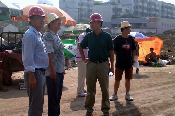 在市政宋斗灣路工程全力進行橋面系及濱河路引橋施工的重要時刻,在合肥市暢通一環(huán)J標工程道排、電排及樁基等全面施工階段,市重點局領(lǐng)導(dǎo)一行前往一環(huán)J標工地和宋斗灣路工地檢查指導(dǎo)工作,項目經(jīng)理李建成、副經(jīng)理王明禮全程陪同。