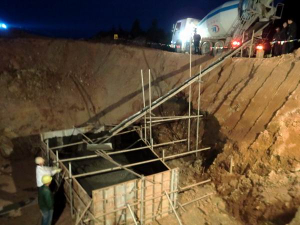 在澆筑過程中,項目部合理安排、精心組織,澆筑作業(yè)人員輪流就餐,堅守崗位。當(dāng)日晚9時許,近5個小時的澆筑工作順利結(jié)束,這標(biāo)志著我標(biāo)段鋼筋砼蓋板通道第一次澆筑作業(yè)圓滿結(jié)束。