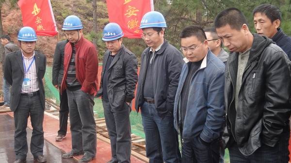 為全面推行瑞尋高速公路上跨主線分離式立交橋標準化施工,瑞尋項目辦于3月1日下午在瑞尋A7合同段的塘坊立交召開上跨橋現(xiàn)澆箱梁標準化施工現(xiàn)場觀摩會,項目辦吳總,管理部、代表處、駐地辦相關(guān)領(lǐng)導,以及全線有上跨橋施工標段的項目經(jīng)理和總工參加觀摩。