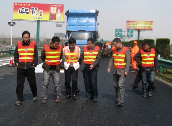 曹部長(zhǎng)一行首先來(lái)到我部施工現(xiàn)場(chǎng),視察了施工段原路面處理及瀝青攤鋪壓實(shí)全過(guò)程。并詳細(xì)詢問(wèn)了混合料的攤鋪溫度及壓實(shí)工藝。視察過(guò)程中,曹部長(zhǎng)強(qiáng)調(diào):安全是施工工作的排頭兵,在保障施工質(zhì)量和進(jìn)度的同時(shí)一定要加大安全工作的投入力度。正在施工的蕪馬互通區(qū)由于車流量較大,我部及時(shí)采取了半封閉半通行的施工方案。施工過(guò)程中,我部專職安全員一刻不離施工現(xiàn)場(chǎng),全程監(jiān)督安全工作。在大家的共同努力下,施工秩序井然、車輛通行順暢有序。曹部長(zhǎng)一行對(duì)此表示滿意。緊接著,曹部長(zhǎng)一行又來(lái)到我部施工后場(chǎng),對(duì)我部備料及試驗(yàn)檢測(cè)環(huán)節(jié)進(jìn)行了視察。曹部長(zhǎng)說(shuō):備料及試驗(yàn)檢測(cè)環(huán)節(jié)是我們施工工作得以順利開展的前提和保障。我們一定要從細(xì)微處著手,緊扣各個(gè)環(huán)節(jié),把好質(zhì)量關(guān)。我部項(xiàng)目經(jīng)理薛斌表示:我部一定恪守各項(xiàng)管理規(guī)范,保證蕪宣高速公路瀝青路面養(yǎng)護(hù)工程按時(shí)、按質(zhì)、按量地完成施工。