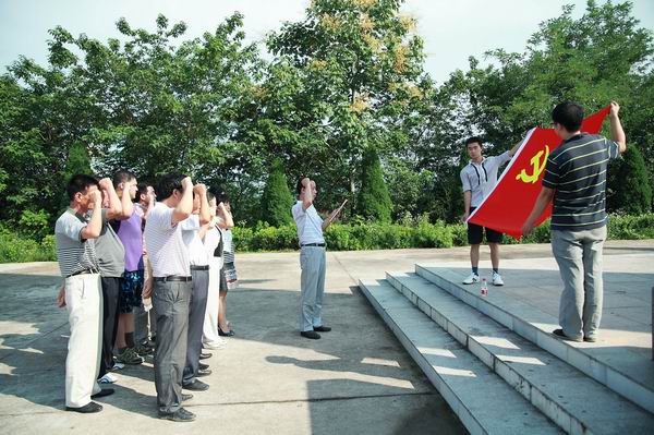 下午,大家興致勃勃的前往獨(dú)山革命舊址群參觀瞻仰。獨(dú)山是革命老區(qū),它為中國(guó)革命和民族解放事業(yè)作出了巨大貢獻(xiàn),同時(shí)也付出極大的犧牲。我們?nèi)w黨員在汪書記的帶領(lǐng)下,在莊嚴(yán)的紀(jì)念塔下,重溫入黨宣誓誓詞。