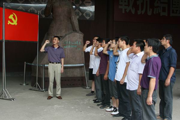 在新四軍舊址大會堂,由李楊書記領(lǐng)誓,宣貍項目全體黨員同志面對黨旗,舉起拳頭,再一次莊嚴宣誓。通過重溫誓詞,激勵自己牢記誓言,對黨忠誠,永葆先進。