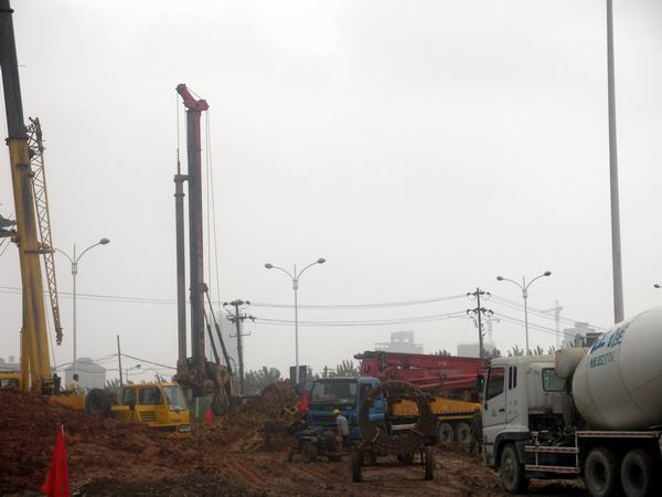 目前,項(xiàng)目部已具備辦公條件,主要管理人員已基本到位,道排、橋梁、樁基、擋墻等施工隊(duì)伍已進(jìn)場(chǎng)施工,并于7月5日,完成首根樁基的澆筑。項(xiàng)目部在人員不足,桿管線、污水燃?xì)夤艿厘e(cuò)綜復(fù)雜等不利因素的影響下,利用現(xiàn)有條件充分挖掘工作面。截止7月17日,已完成駐地建設(shè),懷寧路下穿橋支護(hù)咬合樁33根、下穿橋樁基28根,翡翠路上跨橋鉆孔樁22根,棄土方14600方、溝槽開挖2840方,回填2180方,雨污水管道埋設(shè)約730米,累計(jì)完成產(chǎn)值約1000萬元。