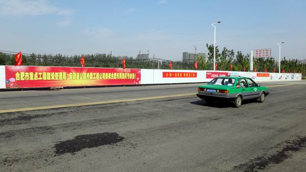 為了此次交口的順利通車,項目部做了充分的準(zhǔn)備。一、南二環(huán)上跨翡翠路橋墩柱已經(jīng)完成,翡翠路南北方向路面的瀝青已攤鋪完成,具備了通車條件。二、積極與政務(wù)區(qū)交警大隊聯(lián)系,做好放行前期交口布置、交通警示裝置的設(shè)立及放行后交通線路走向的確定事宜;此外,為了保證施工的封閉性,項目部迅速組織人員將翡翠路與南二環(huán)路交口兩邊的圍擋扎好,保證了車輛通過的安全性。三、為了響應(yīng)市政府及市重點局號召,項目部做好一系列安全文明工作,如在圍擋兩邊張貼懸掛了大量的警示標(biāo)語及宣傳條幅,不僅對來往車輛及行人起到一定的警示作用,同時也進(jìn)一步加強了公司品牌形象的宣傳。四、項目部已于9月18日將翡翠路交口放行的通告發(fā)放到附近居民區(qū)及相關(guān)單位,保證交口放行信息傳遞的及時性。