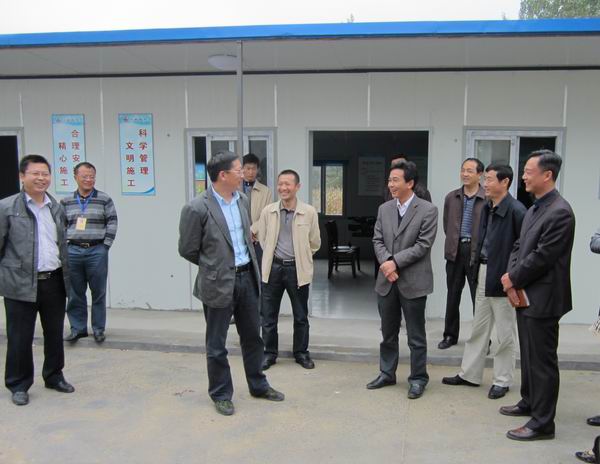 王傳鵬一行先來到我標段正在建設(shè)中的預(yù)制場拌合站,并聽取了項目經(jīng)理杜海峰的匯報。接著來到我標段項目部,調(diào)研項目駐地建設(shè)情況,就項目駐地建設(shè)作出具體指導(dǎo)。他要求項目駐地的實驗室及相關(guān)配套設(shè)施要盡早完備,并指出在地方事務(wù)上,出現(xiàn)問題要及時與縣指和鄉(xiāng)鎮(zhèn)進行溝通,協(xié)調(diào)解決。同時,他要求縣指繼續(xù)做好各項協(xié)調(diào)工作,確保蚌固路改造工程于10月底順利施工。