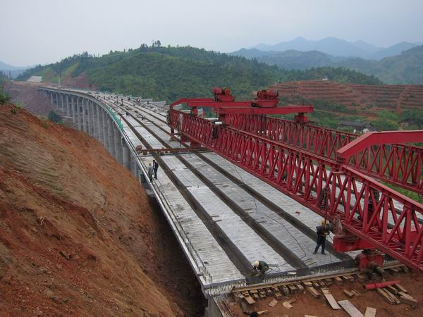 今年贛南雨季較之往年稍微提前,三月雨水繁多,給江口大橋的梁板安裝帶來了很大影響。作為開年施工建設中的控制性施工點,我部積極采取多種措施,在確保施工安全和工程質量的前提下,大力推進梁板安裝施工進度。項目部成立以項目經理為組長的梁板安裝工作組,搶抓有利天氣開展安裝工作,于2012年3月26日創造全線單天安裝10片30米T梁的記錄(包括架橋機過孔),扎扎實實的把工作落在實處,為我部完成江口大橋的半幅貫通奠定了堅實基礎。