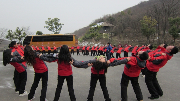 4日一大早,在凜冽的寒風中,大家分成三個組,并起好各自的隊名:同心隊、利劍隊和團結隊。拓展訓練的項目共分為背摔、挑戰(zhàn)150、七巧板、極速60秒、驛站傳書、創(chuàng)意晚會、跨越斷橋、單杠8個項目。