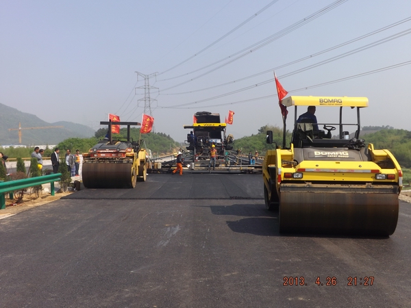 為保證此次試驗(yàn)段攤鋪?lái)樌M(jìn)行,項(xiàng)目部于4月25日晚召開專項(xiàng)會(huì)議,對(duì)各施工班組及機(jī)械操作人員進(jìn)行詳細(xì)的技術(shù)、安全交底,對(duì)整個(gè)施工過程的各個(gè)環(huán)節(jié)進(jìn)行了詳細(xì)確認(rèn),將責(zé)任、要求細(xì)化到個(gè)人。會(huì)議強(qiáng)調(diào)在施工過程中要嚴(yán)把質(zhì)量關(guān),瀝青出場(chǎng)溫度、到場(chǎng)溫度、攤鋪溫度、初壓溫度、復(fù)壓溫度、終壓溫度等相關(guān)指數(shù)均要在設(shè)計(jì)范圍內(nèi),同時(shí),安全保障措施等也要控制到位。
